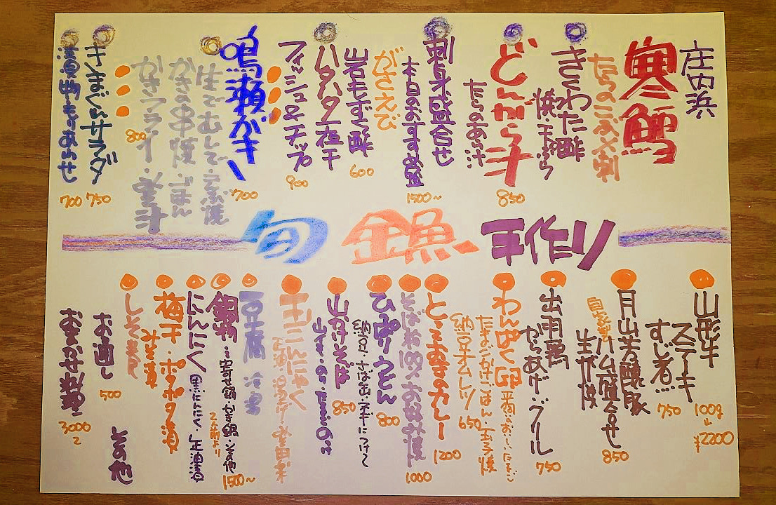 山形県庄内地方から仕入れた新鮮でめずらしい自慢の魚介や、アレンジされた季節の料理。