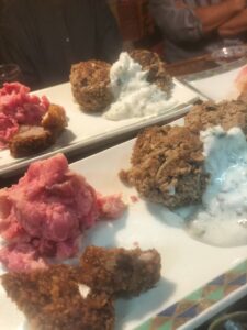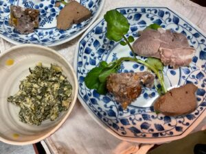 羊の肺と喉のスープ、ナッツとドライフルーツ入り羊のテリーヌ、羊レバーのコンヒィ、羊のモモとスネのハム、羊のモモ肉とバラ肉の串焼き、羊のステーキ、羊のトマトのスープ、羊のヒレ、タン、ハツ焼き、マトンコーラーウルンダイ、などなど!