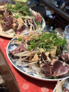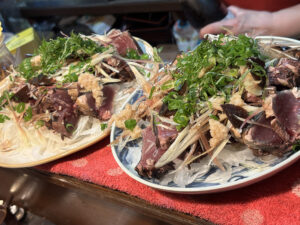 カツオの藁焼き、天然月山竹焼き、生牡蠣などなど…